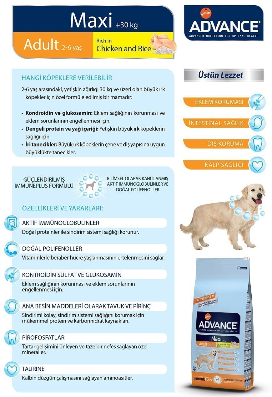Advance Maxi Adult Tavuklu/Pirinçli Büyük Irk Yetişkin Köpek Maması 14 Kg