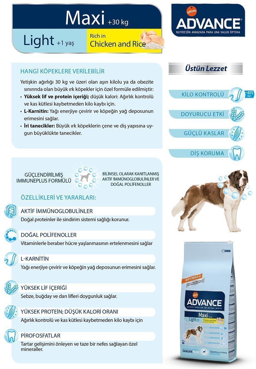 Advance Maxi Light Tavuklu/Pirinçli Büyük Irk Diyet Köpek Maması 15 Kg