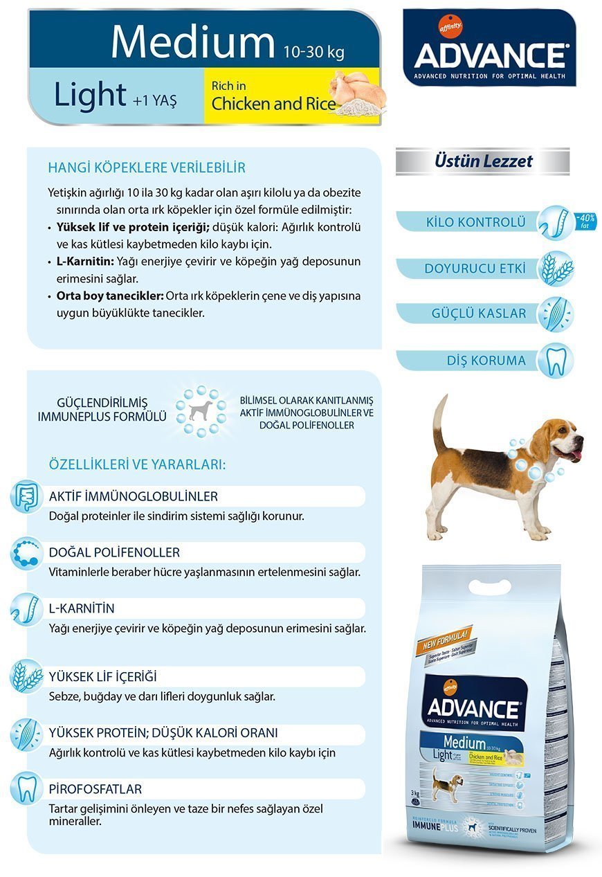 Advance Medium Light Tavuklu/Pirinçli Orta Irk Diyet Köpek Maması 12 Kg