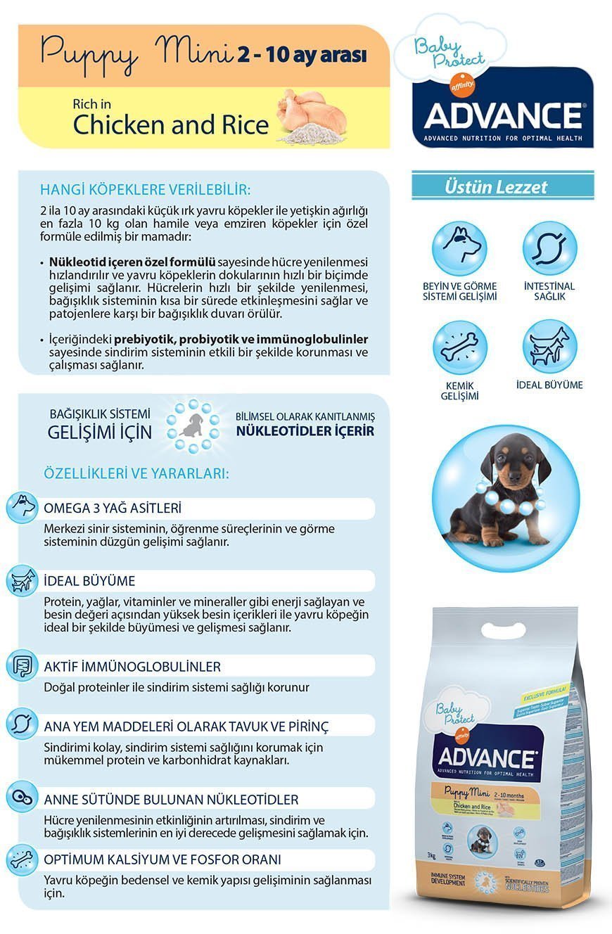 Advance Puppy Protect Mini Tavuklu/Pirinçli Küçük Irk Yavru Köpek Maması 7,5 Kg