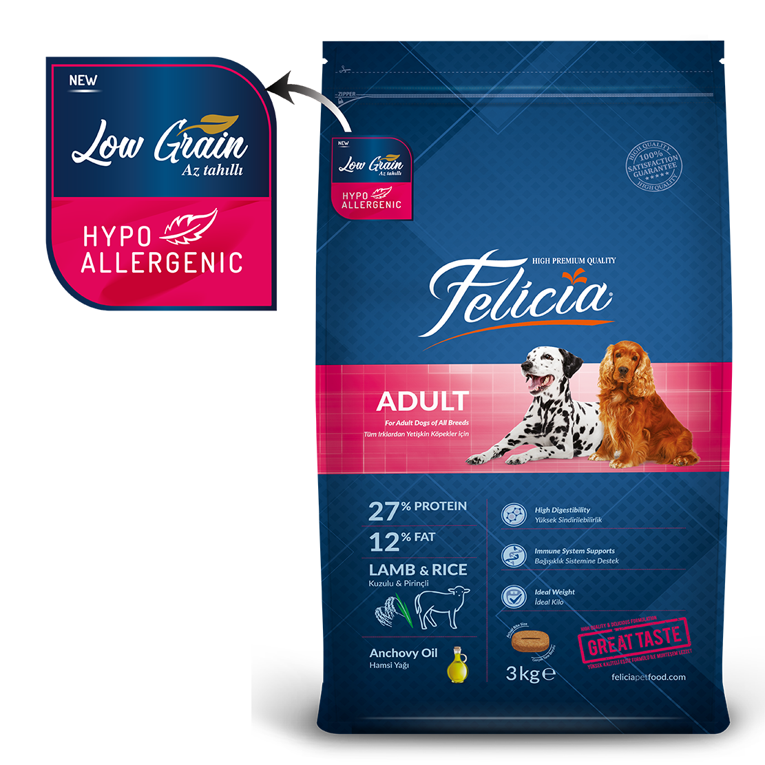 Felicia® Adult Dog L&R köpeğinizin ideal vücut ağırlığını koruyarak uzun bir yaşama ve sağlıklı bir metabolizmaya sahip olabilmesi için protein ve yağ oranı dengelenerek formüle edilmiştir.