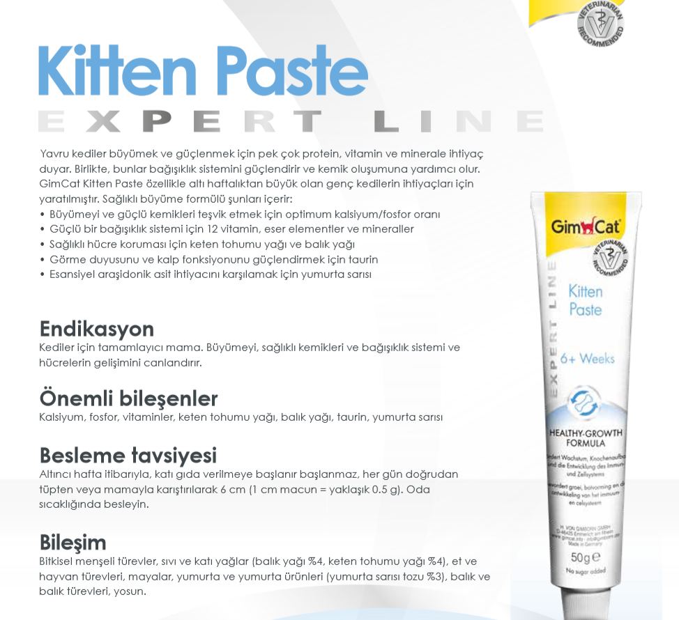 GimCat Kitten Paste - Yavru Kediler İçin Vitamin Macunu 50 gr 12 ayrı vitamin ve kalsiyum içerir